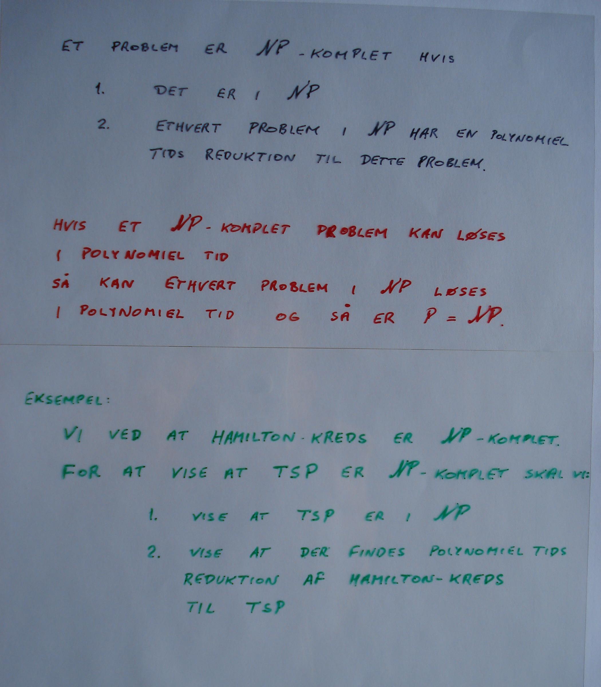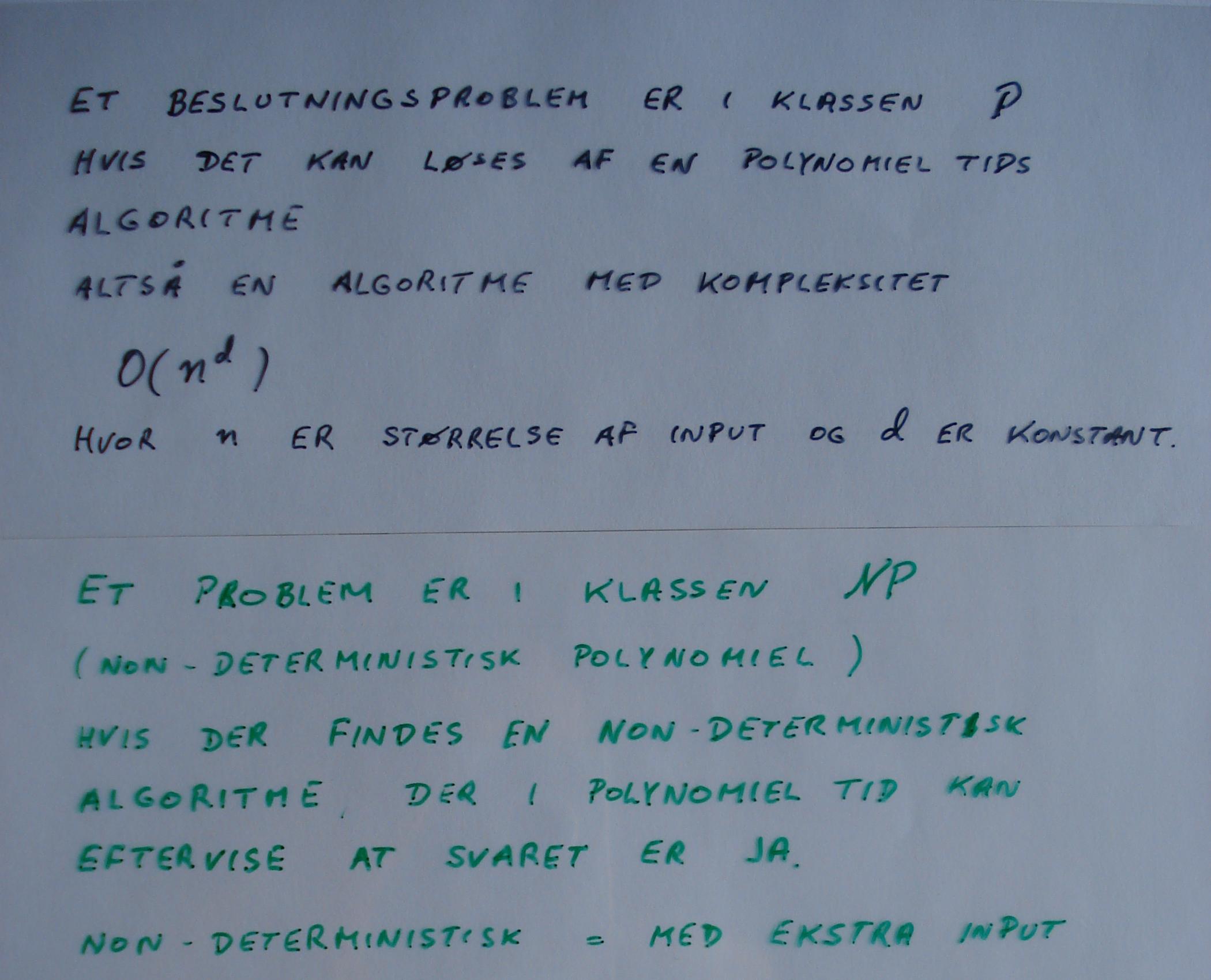 - Hvis der findes en polynomiel tids algoritme, der afgør om