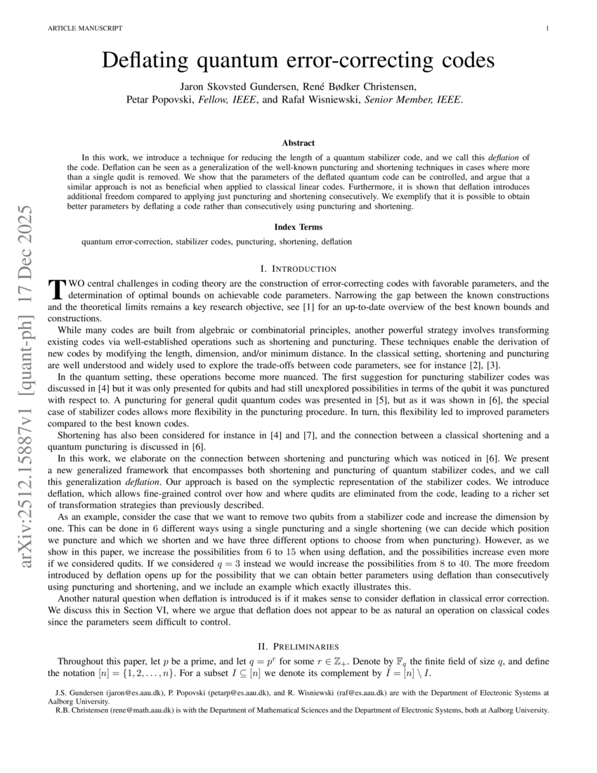 - , , , : Deflating quantum error-correcting codes. arXiv. [Preprint]